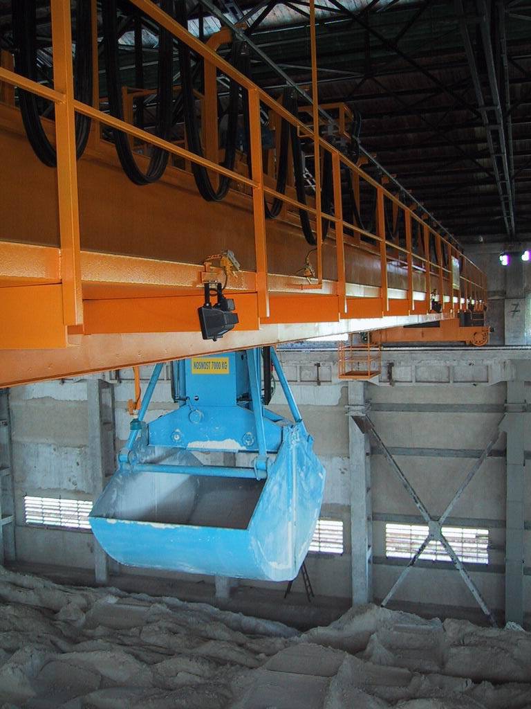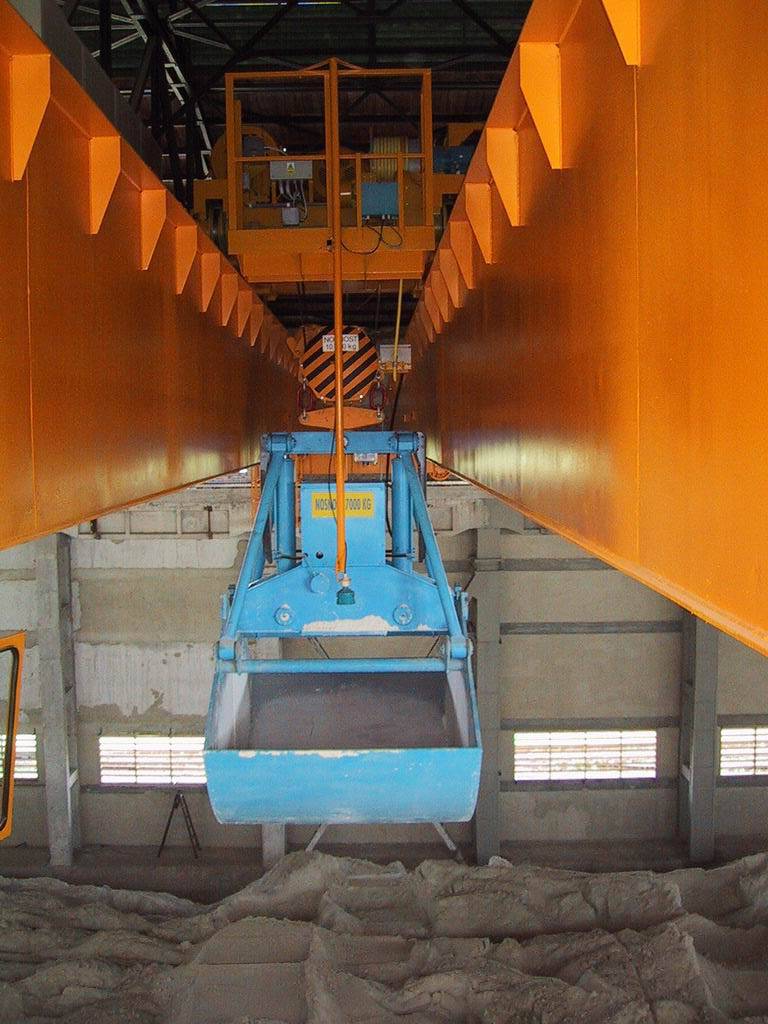 V rámci tohoto projektu jsme navrhli, vyrobili a dodali plně automatizovaný mostový drapákový jeřáb, určený pro manipulaci se sypkým sádrovcem v uzavřené skladovací hale. Zařízení představuje vysoce sofistikovaný systém, který propojuje klasickou jeřábovou technologii s moderním řízením a automatizací průmyslových procesů.