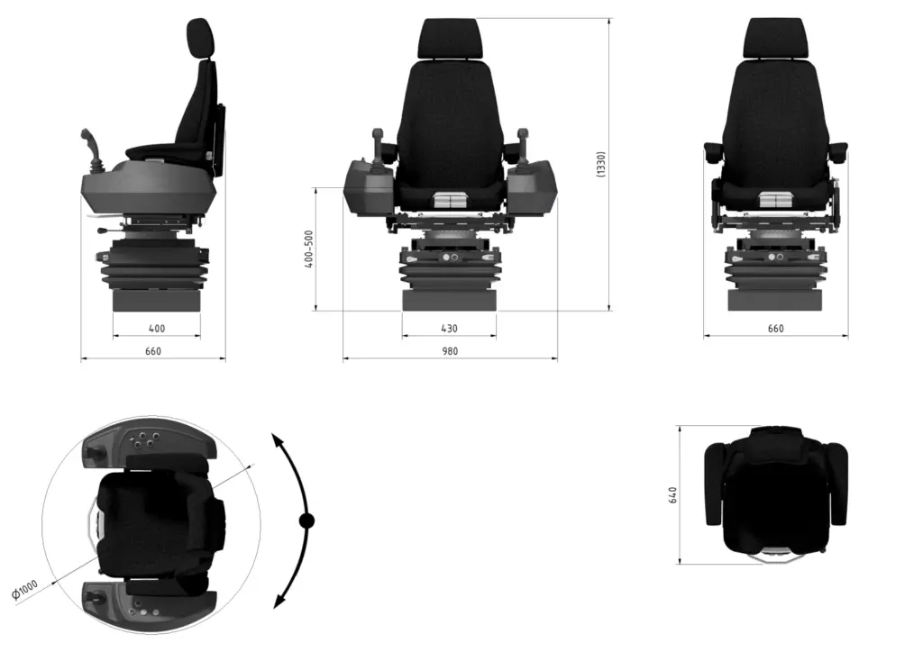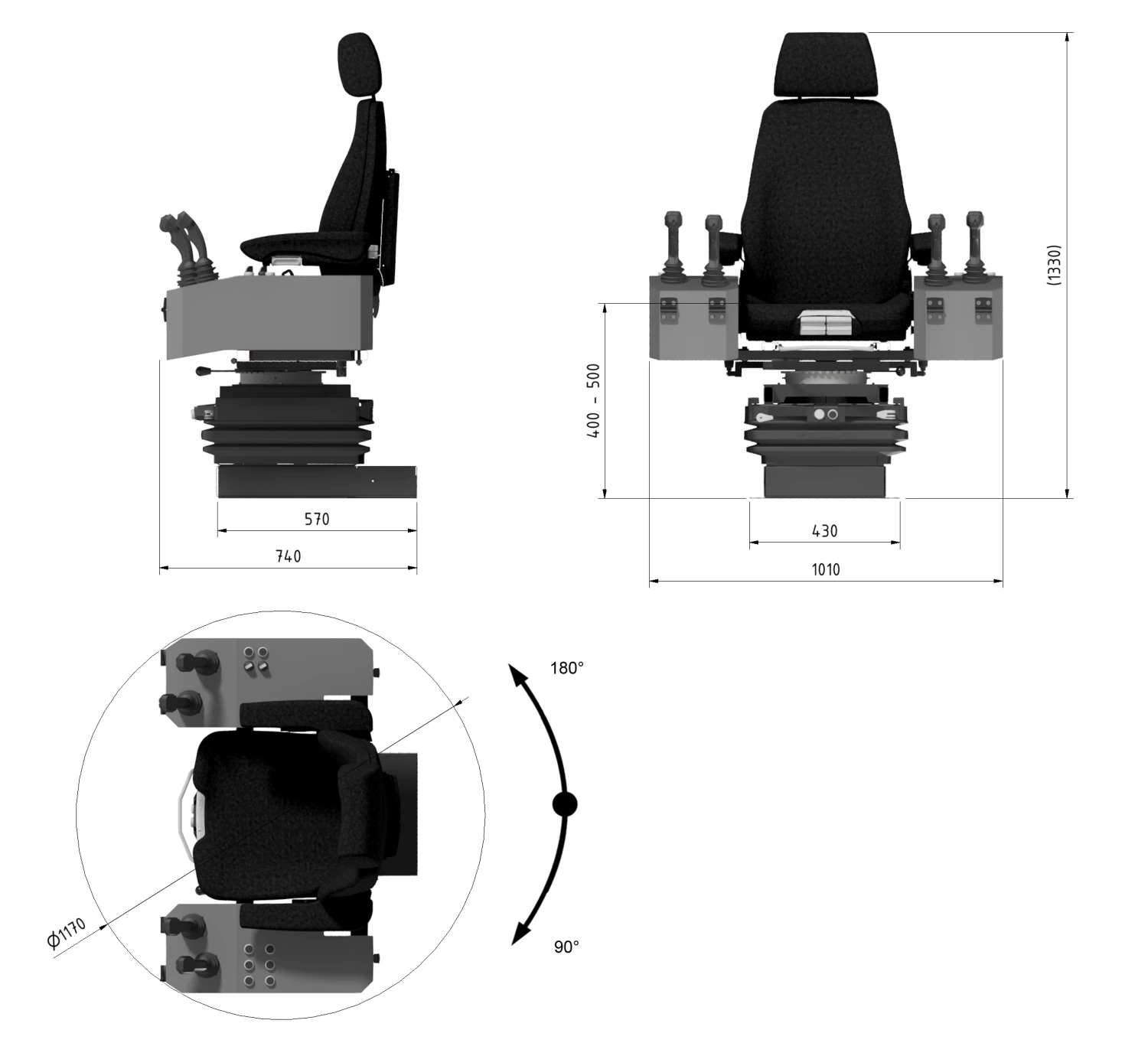 Ovládací pulty jsou demontovatelné a ke křeslu připojené přes konektor, což umožňuje montáž křesel do kabin s omezenými prostorovými možnostmi (např. prostupem skrz strop kabiny). Kompaktní forma ovládacích pultů umožňuje montáž pouze jednoho joysticku na každou stranu.