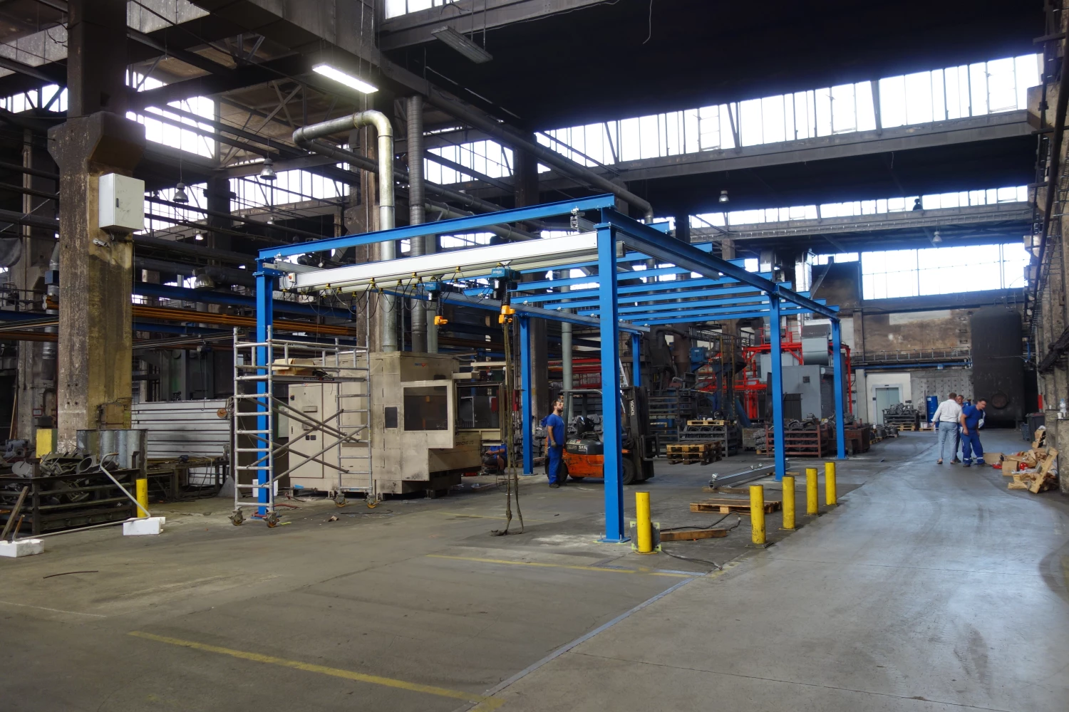 Podvěšené jeřáby navrhujeme podle dispozice haly, požadované nosnosti a způsobu manipulace tak, aby plynule navazovaly na technologii zákazníka. Vhodné jsou pro linky, sklady a provozy s menším zatížením pojezdové dráhy, kde přinášejí flexibilní manipulaci v celé šířce haly a dobré využití prostoru.