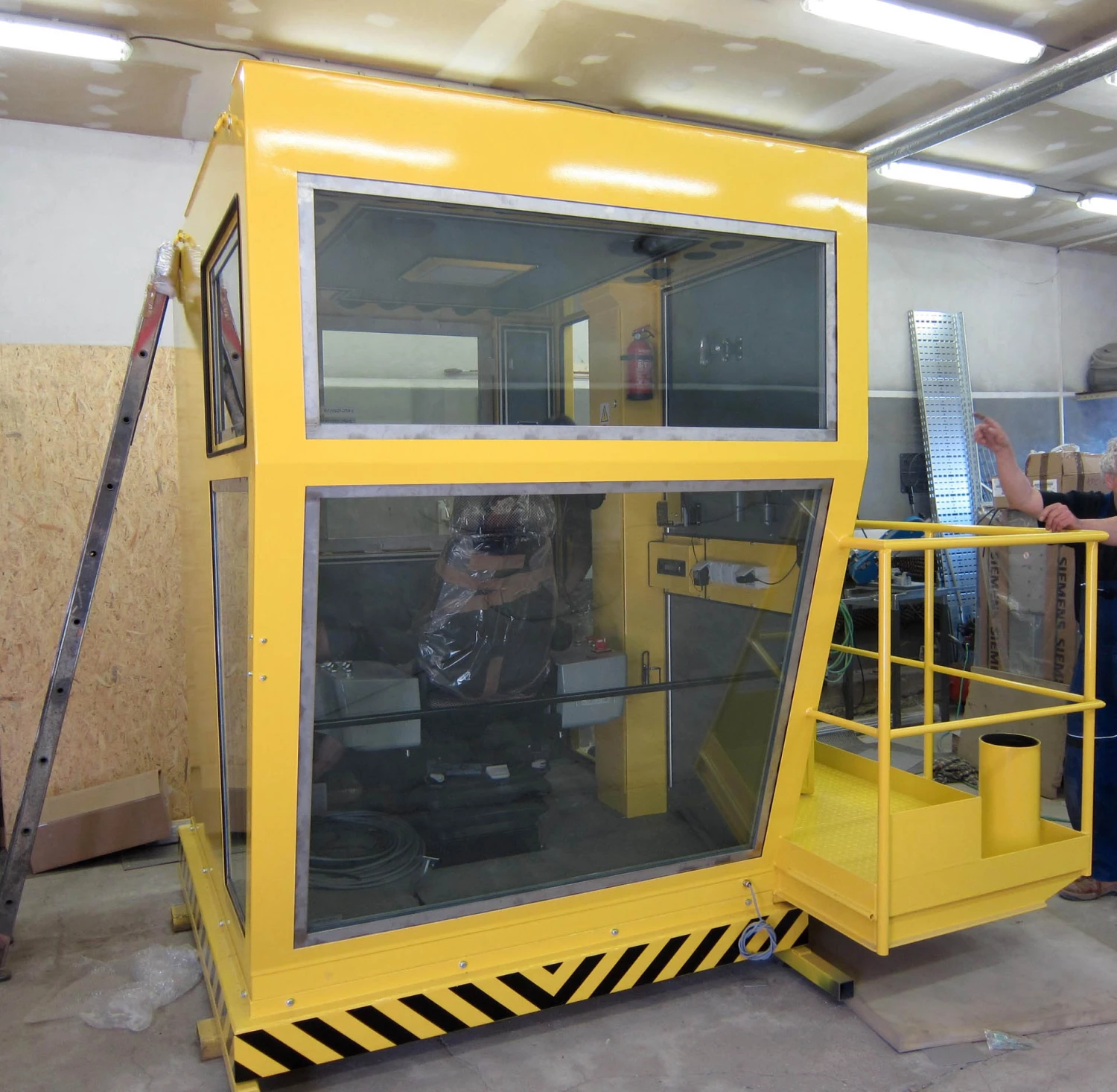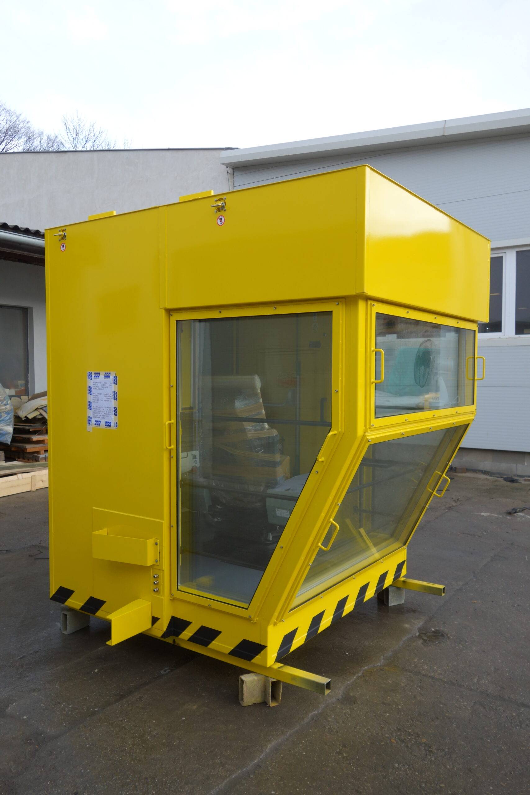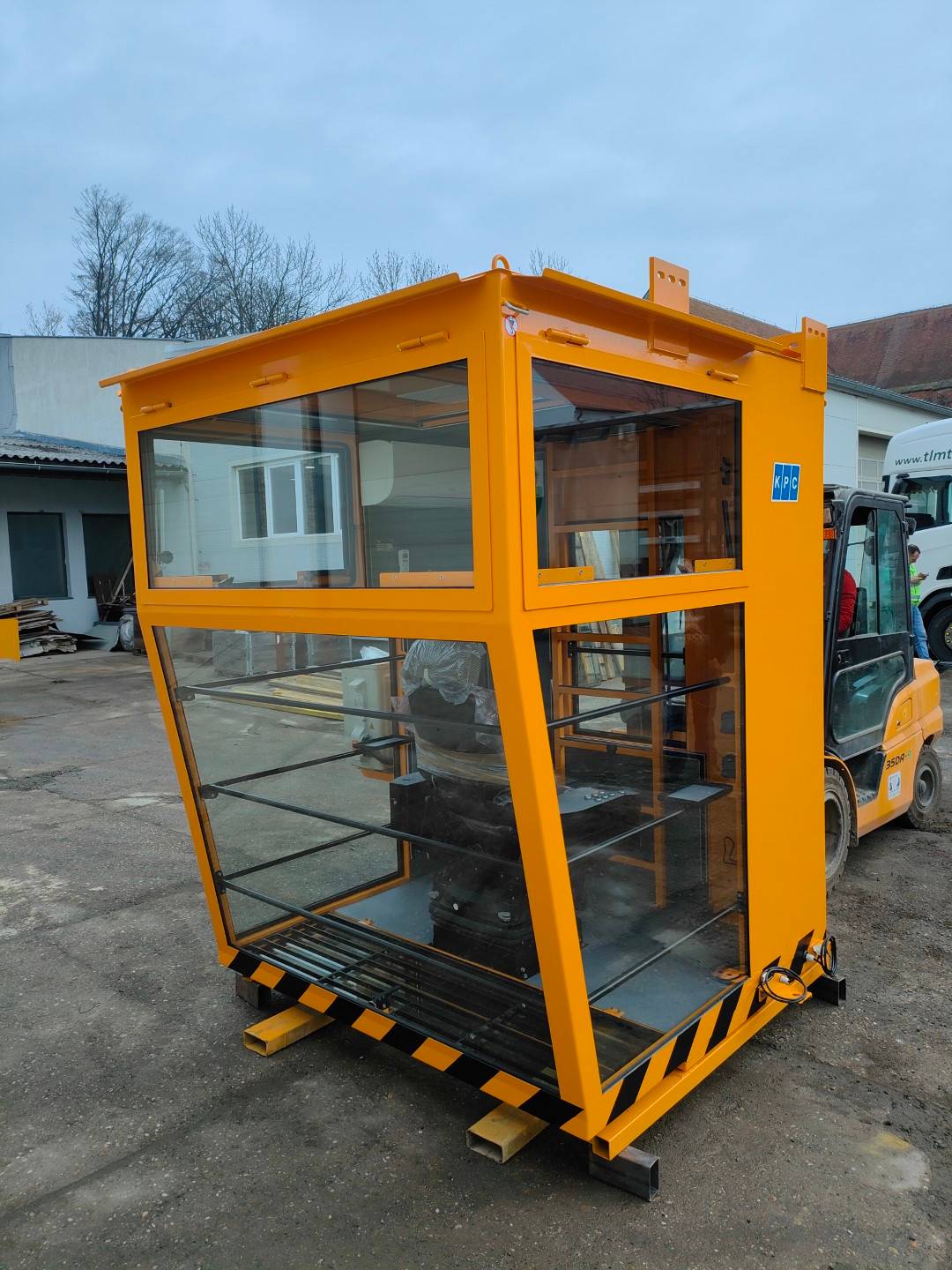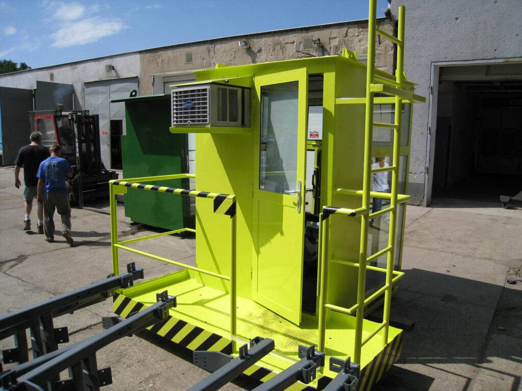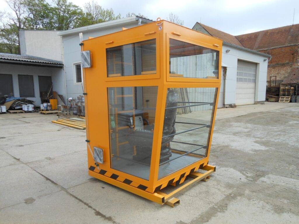 Kabina může být vybavena klimatizací, topným tělesem, led reflektory, průmyslovou kamerou a mnoho dalšími prvky dle přání zákazníka.