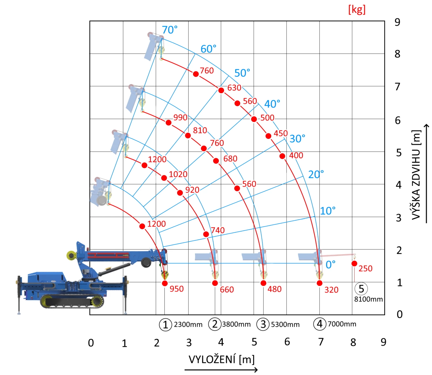 The design allows precise work in close proximity to machines, process units or building structures. The solution includes advanced safety systems - overload and stability monitoring, mechanical upper limit switch for pulleys, brake valves for hydraulic cylinders, travel/boom switch and limitation of the working range according to the actual extension of the stabilizing feet.