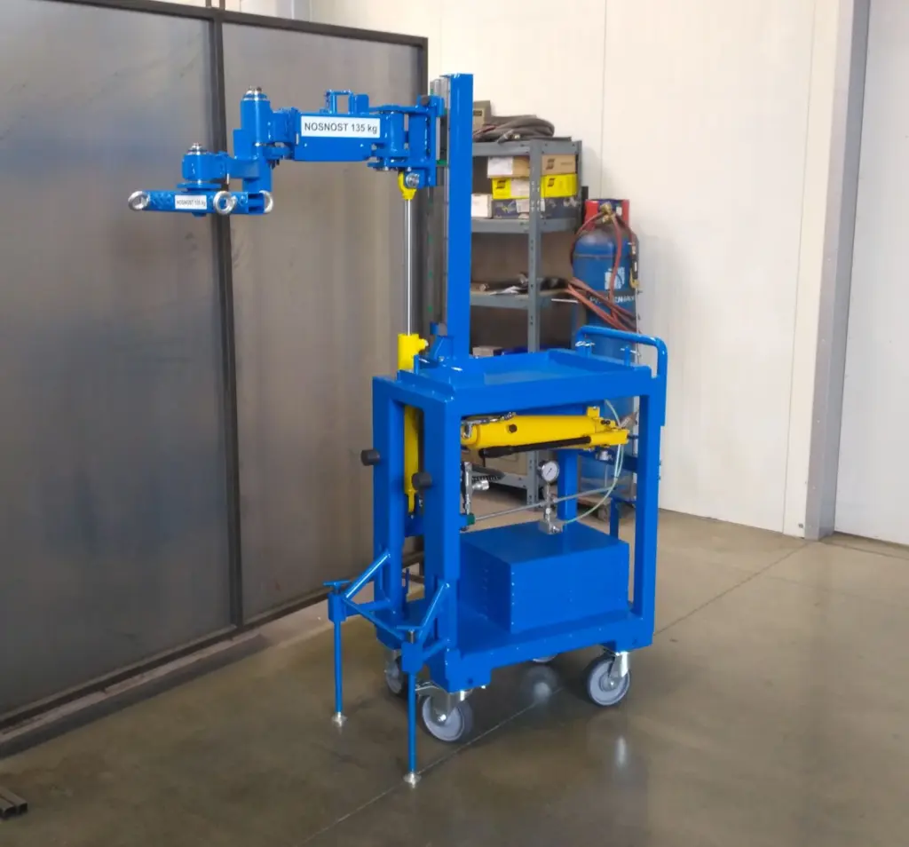 Manipulátor s obráběcími přípravky je navržený pro ulehčení práce při údržbě nebo výměně přípravku v CNC stroji. Umožňuje manipulaci ve vertikálním a horizontálním směru v dosahu otočného lomeného ramena. Manipulátor je mobilní, ručně přemístitelný na čtyřech kolech, ale pouze buď bez břemene nebo s břemenem uloženým na odkládací ploše vozíku. Při manipulaci s přípravky je manipulátor standardně podepřený na opěrkách a pojezdových kolech. Manipulátor je vybaven hydraulickým válcem, jehož zdvih je ovládaný hydraulickou ruční pumpou. Díky tomu je manipulátor absolutně nezávislý na externím zdroji energie.