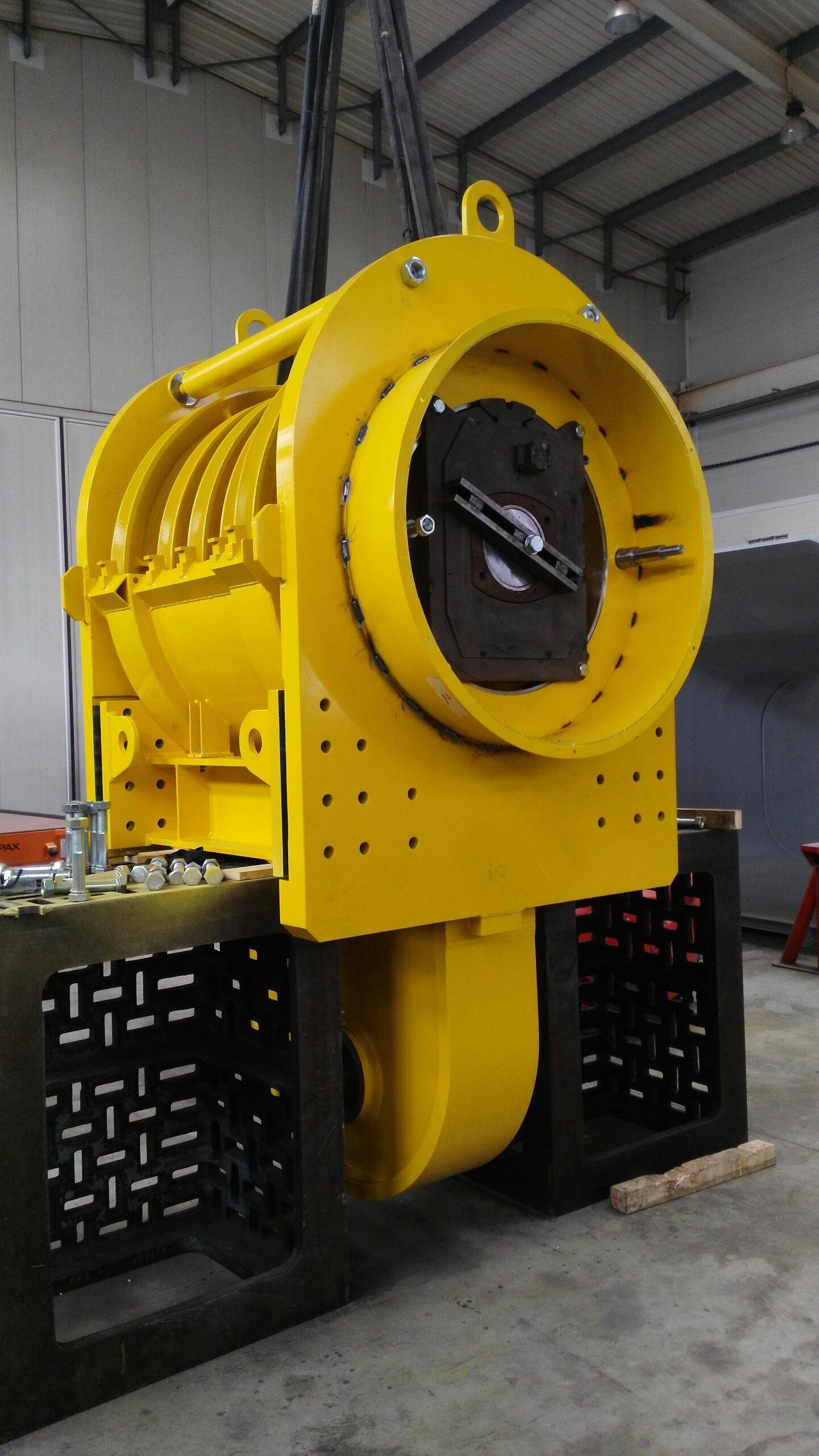 Dělené provedení s odnímatelnými bočnicemi umožňuje snadnější montáž, demontáž i servis jednotlivých částí, zejména výměnu kladek nebo snímačů vážení přímo v provozu bez nutnosti rozsáhlé demontáže zařízení. Kladky jsou uloženy na čepu pomocí valivých ložisek a jejich mazání je zajištěno maznicemi přístupnými v různých polohách kladek. Konstrukce zároveň umožňuje instalaci snímačů vážení pro registraci hmotnosti manipulovaného břemene.