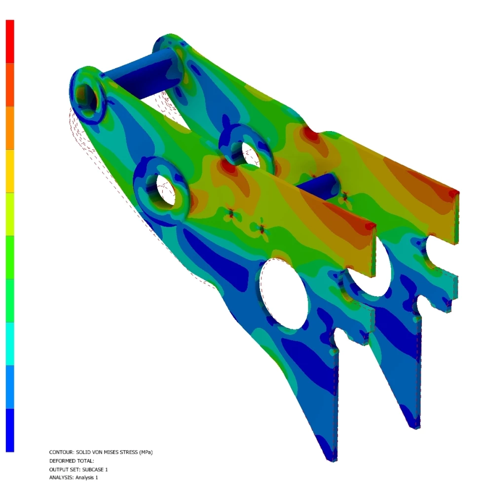 S ohledem na limitující nosnost jeřábu a zadanou max. hmotnost plechu musela být konstrukce klešťové traverzy co nejvíce vylehčená. Toho bylo dosaženo především použitím vysokopevnostních materiálů hlavních nosných částí a na základě zpracování podrobných výpočtů pomocí MKP, díky kterým bylo možné tvar konstrukce vhodně přizpůsobit a omezenou hmotu materiálu efektivně využít pro maximální možnou celkovou tuhost nosných částí traverzy.